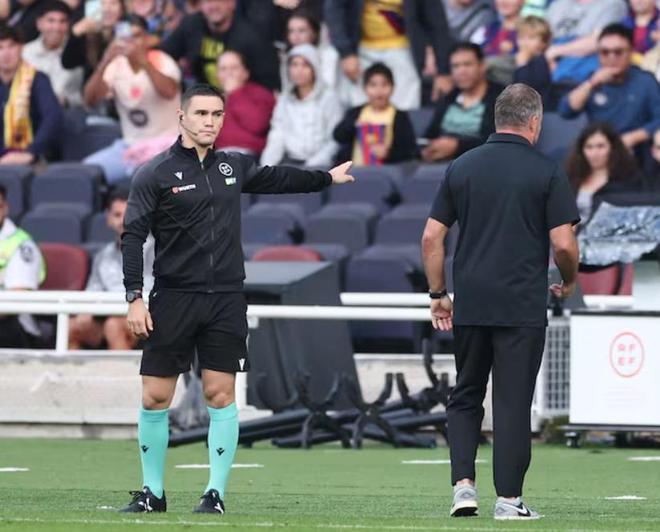 雷速體育10月19日訊 因?yàn)樵趯?duì)赫羅納的比賽中吃到紅牌,巴薩主帥弗里克將無法現(xiàn)場(chǎng)指揮對(duì)陣皇馬的國(guó)家德比。在本輪西甲比賽中,他因激烈抗議裁判補(bǔ)時(shí)時(shí)間過短,被主裁判曼薩諾連續(xù)出示兩張黃牌,最終被紅牌罰出場(chǎng)。