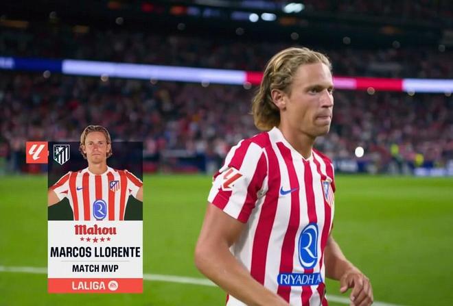 官方消息,馬科斯-略倫特當(dāng)選馬德里競(jìng)技對(duì)陣奧薩蘇納一役全場(chǎng)最佳。