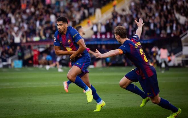而在中場(chǎng)方面,弗利克選擇讓費(fèi)爾明當(dāng)后手,因?yàn)榈聡?guó)人必須要考慮到首發(fā)的亞馬爾無(wú)法堅(jiān)持90分鐘,而在亞馬爾被換下時(shí)需要有人可以繼續(xù)提供進(jìn)攻力,所以選擇卡薩多、德容與佩德里首發(fā)組成中場(chǎng)。在后衛(wèi)線上,巴爾德和孔德首發(fā),而庫(kù)巴西與埃里克·加西亞本賽季第三次配對(duì)首發(fā)中衛(wèi)組合,不同的是庫(kù)巴西回到右中衛(wèi)位置,埃里克·加西亞去了左中衛(wèi)位置。