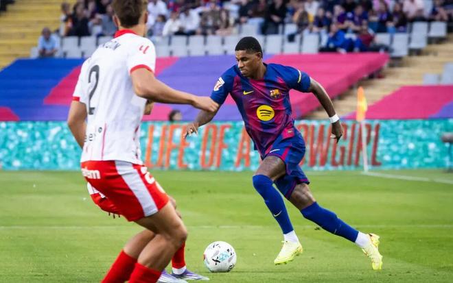 巴薩上半時(shí)后半段門前險(xiǎn)象環(huán)生,但也創(chuàng)造了得分機(jī)會(huì),德容第26分鐘利用庫(kù)巴西帶球插入禁區(qū)引起的混亂射門被門將撲出,而拉什福德的任意球射門也射中橫梁彈出。巴薩上半時(shí)7次射門4次射正,吉羅納5次射門3次射正,如果吉羅納的射門效率再高點(diǎn),完全可以領(lǐng)先巴薩進(jìn)入下半時(shí)。