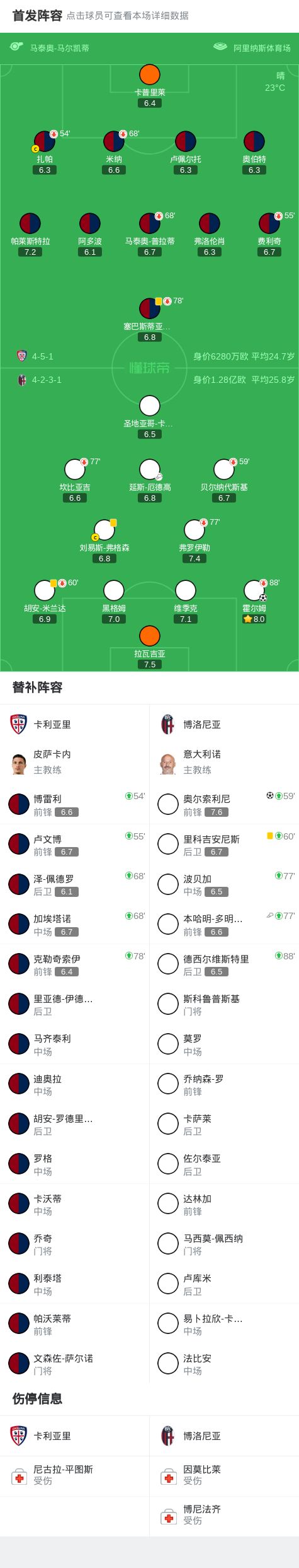 博洛尼亞2-0卡利亞里,霍爾姆建功,奧爾索利尼鎖定勝局